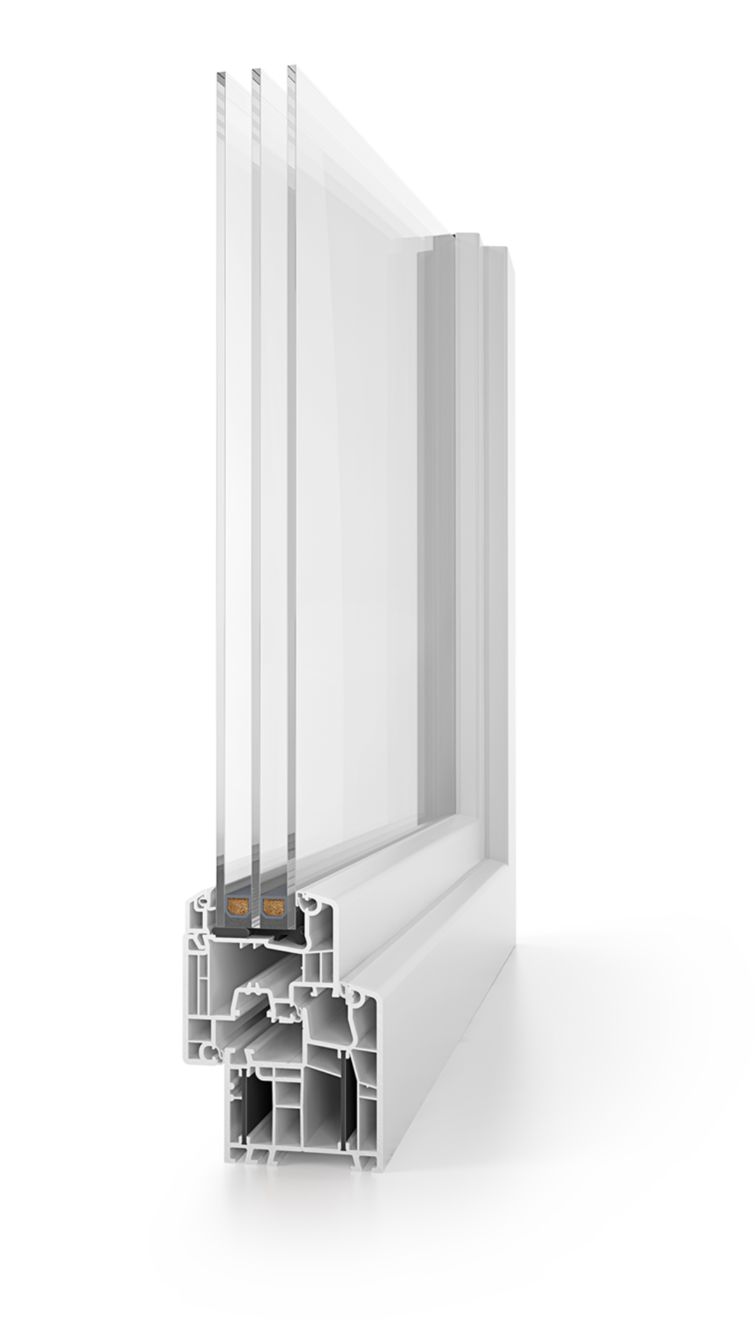 - Uf = 0,94 W/m²K, pri čemu se uz trostruko ostakljenje može postići Uw vrijednost od 0,65 W/m²K